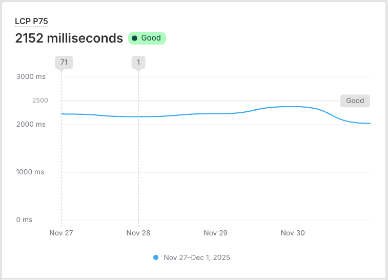 A sluggish 4.2-second LCP was costing this brand conversions. Our engineered performance improvements cut LCP to 2.1 seconds flat — enhancing SEO signals, boosting engagement, and creating a seamless path to checkout for every visitor.